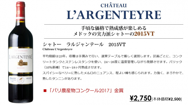 『シャトー ラルジャンテール 2015VT(品番:FD-161)』です。