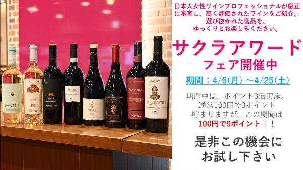 サクラアワード受賞ワインを集めたフェアを開催いたします。